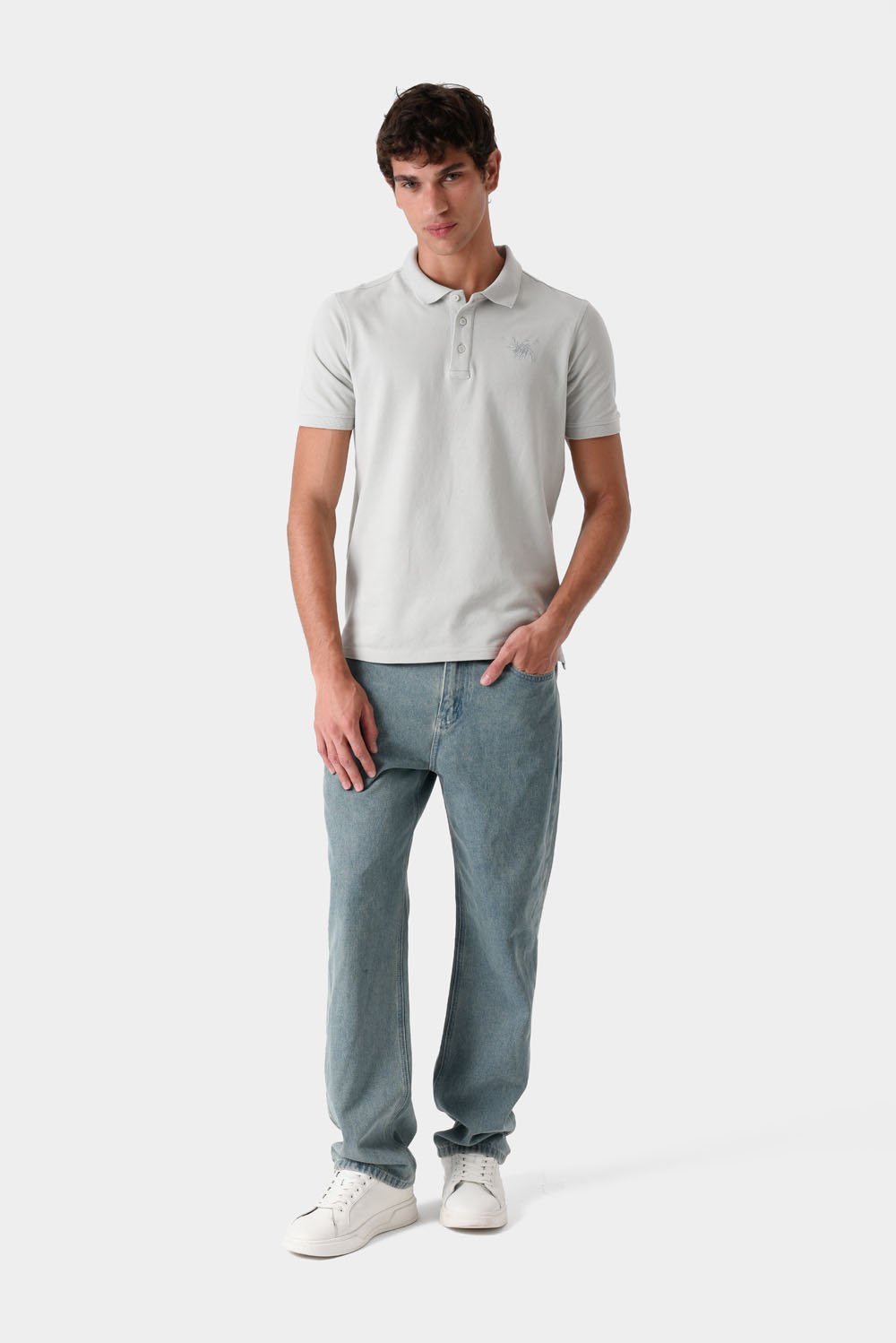 بولو شيرت بيزك رجالي رمادي بقصة عادية