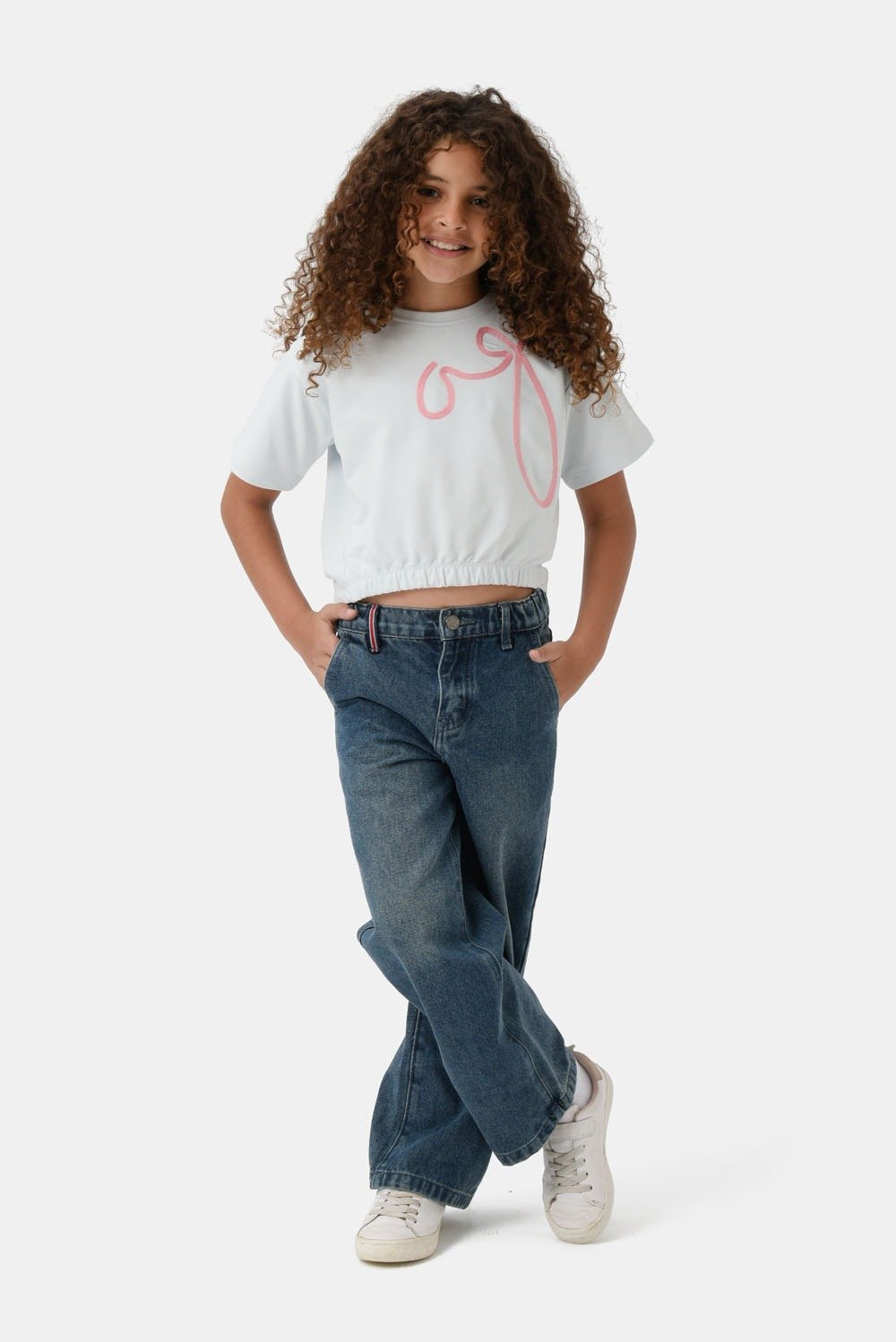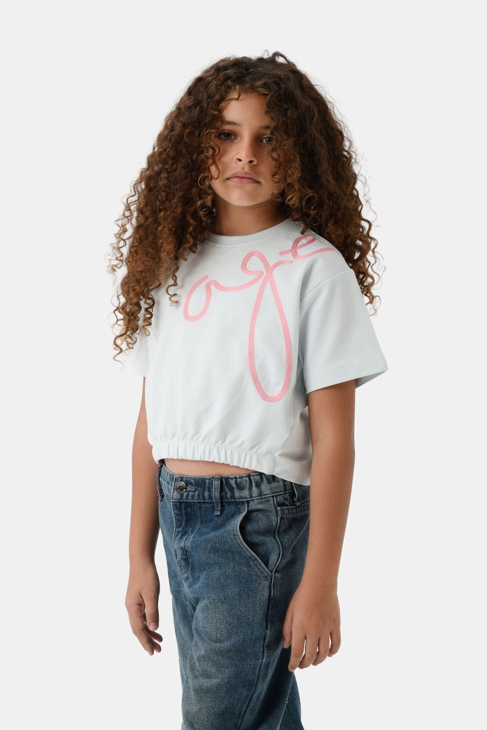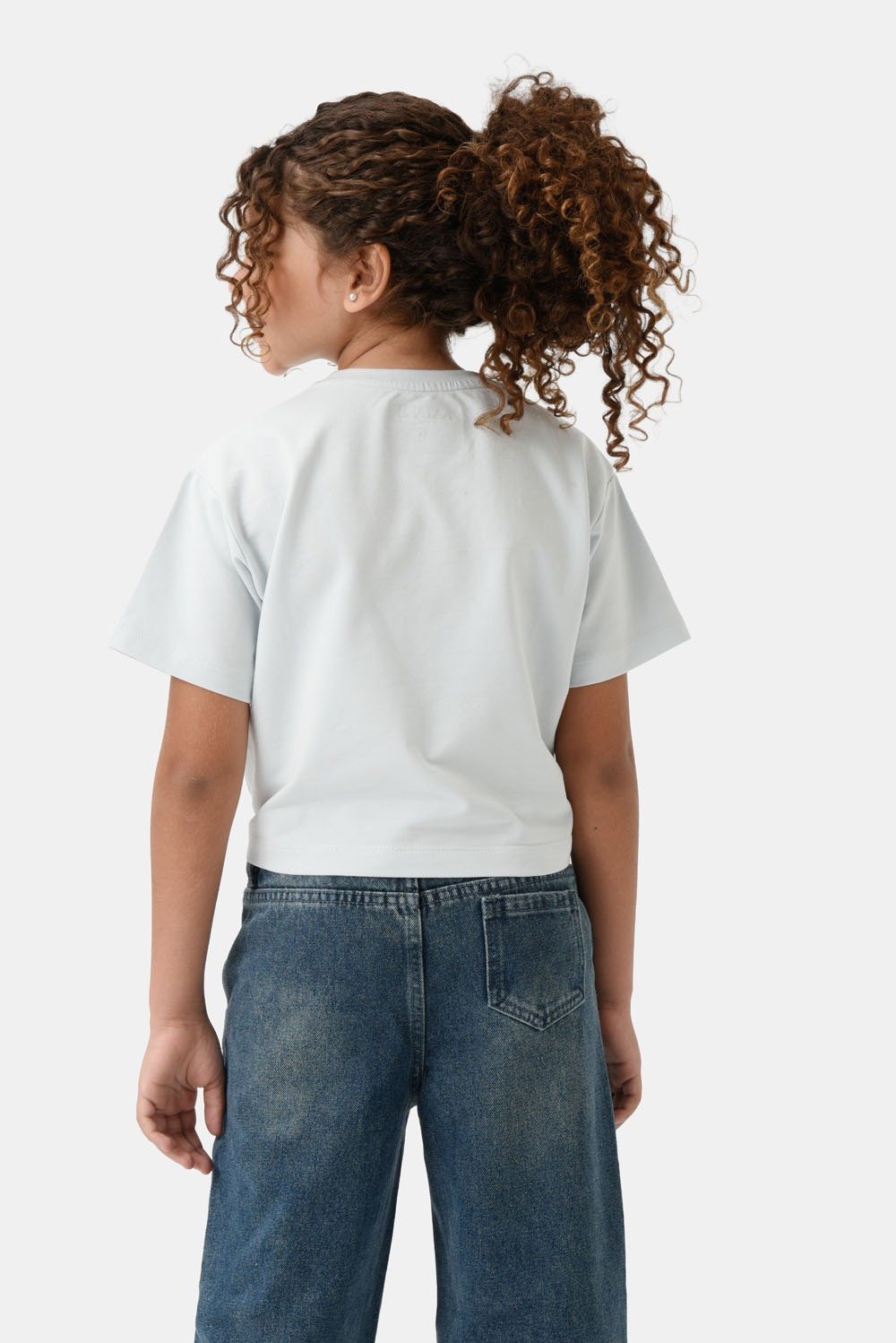 تيشيرت بناتي بلون أزرق فاتح، قصة واسعة