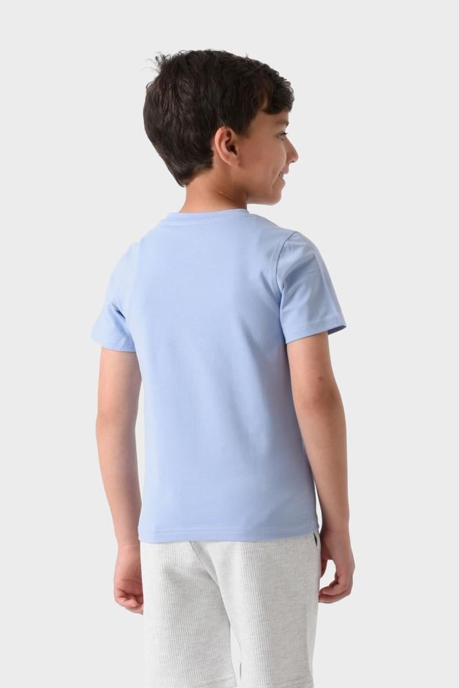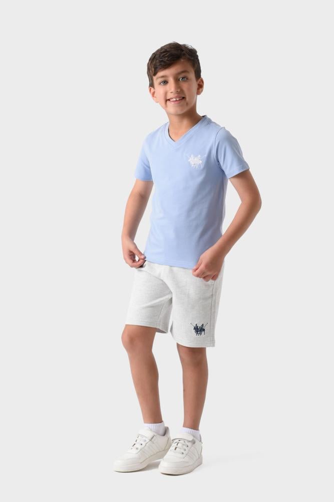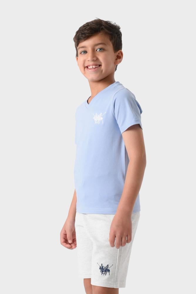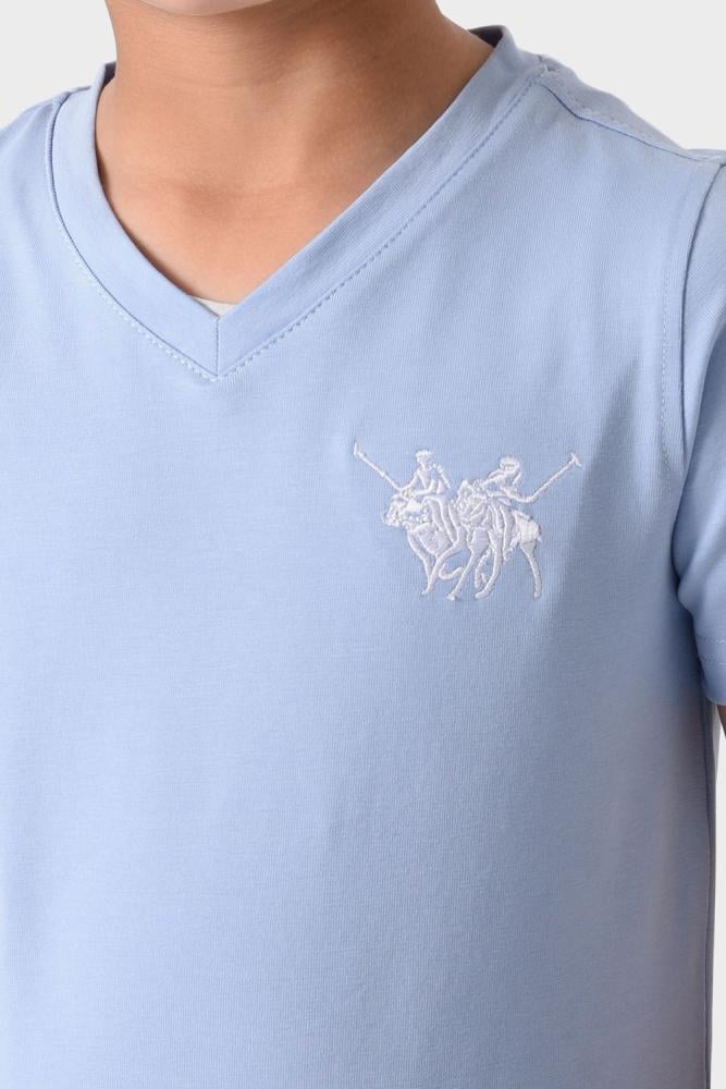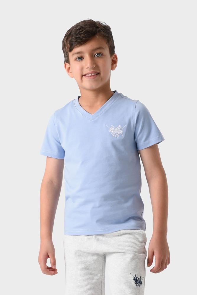 تيشيرت بيزك رقبة V للاولاد ازرق فاتح بقصة عادية