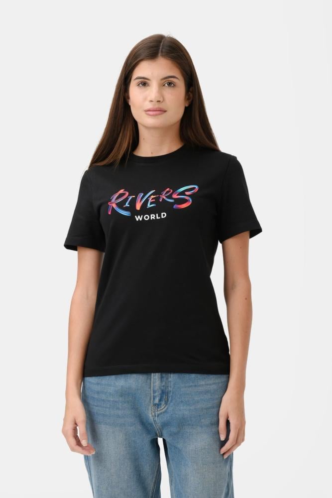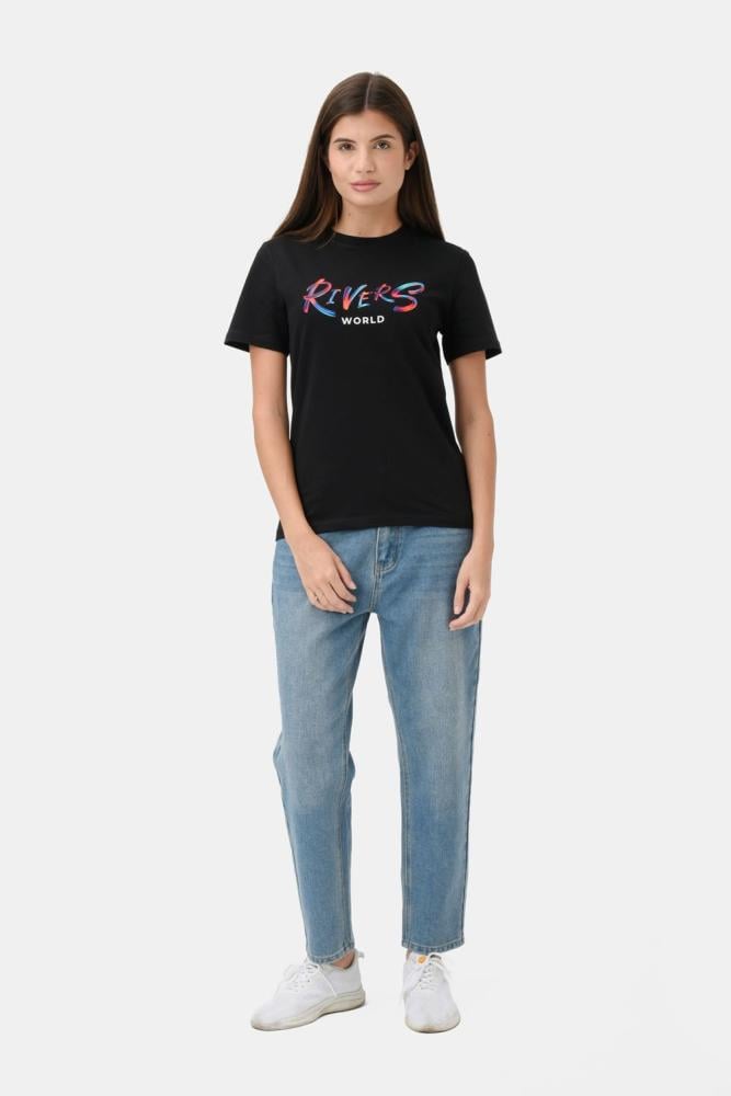 Women's black T-shirt, regular fit