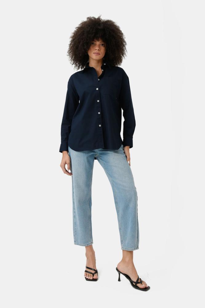 Women's navy blue shirt, wide cut